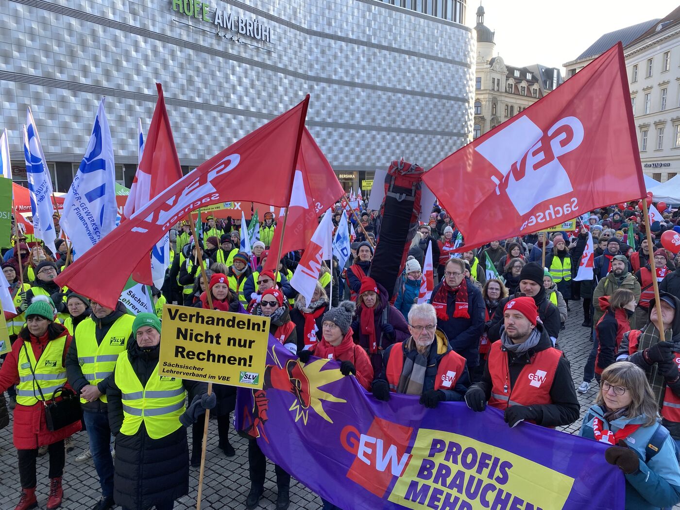 - Streikende Lehrer am Mittwochmittag auf dem Richard-Wagner-Platz in Leipzig.