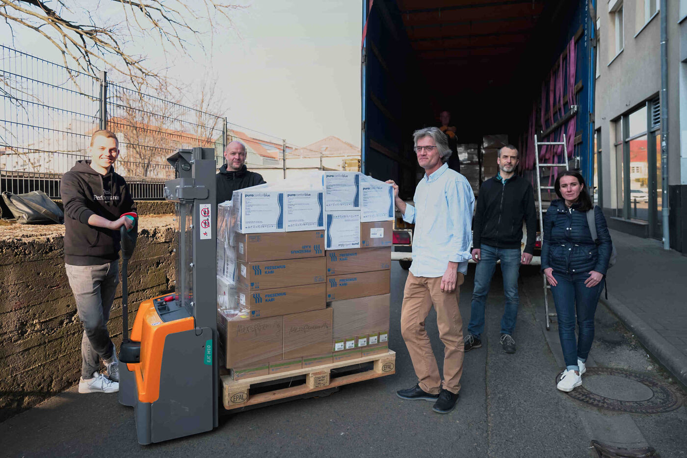 Die Sächsische Landesärztekammer und weitere Organisationen schicken Krankenhausbetten, Medizintechnik, Verbandsmaterial und Medikamente mit einem Gesamtvolumen von 60.000 Euro in die Ukraine. Die Krankenhäuser in Kiew und Nowowolynsk hatten darum gebeten. Eine erste Verladung der dringend benötigten Materialien erfolgte am Donnerstagnachmittag an der Lagerhalle der unterstützenden Apotheke Johannstadt verladen.