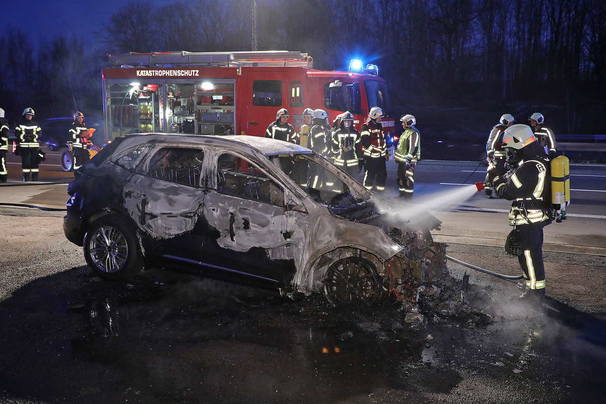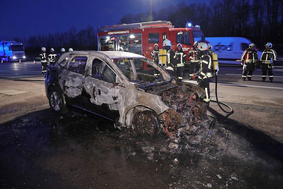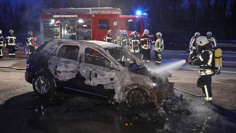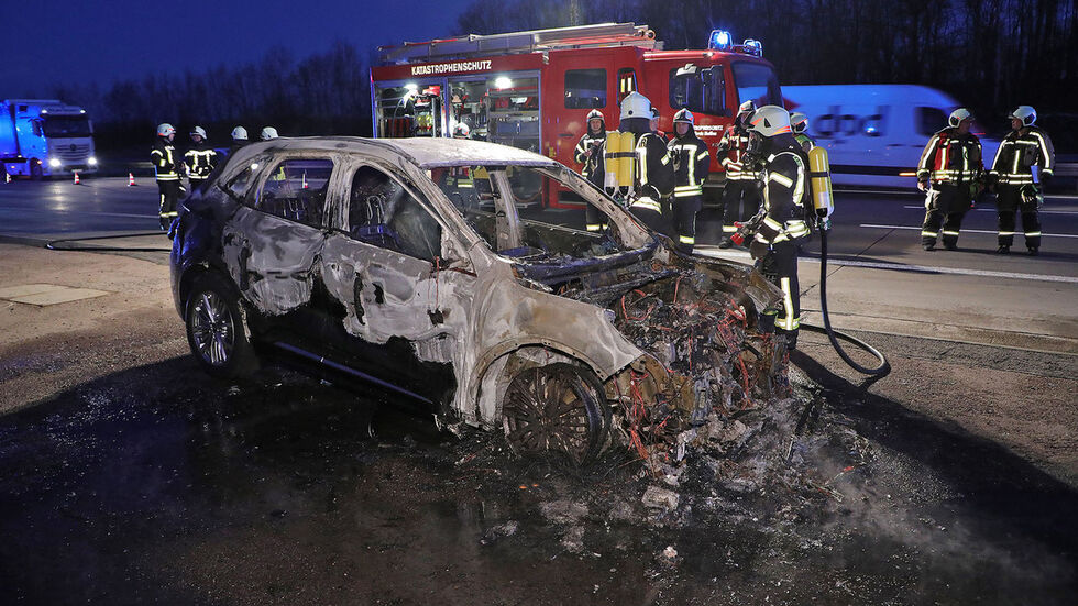 Der Ford-Fahrer hatte nach Informationen unseres Reporters das Auto rechtzeitig verlassen. Er wurde vorsorglich vom Rettungsdienst untersucht. Das Auto brannte völlig aus. Die Feuerwehr löschte mit zwei Strahlrohren. Die Brandbekämpfung bei Elektro- und Hybridfahrzeugen erfordert Umsicht und Fingerspitzengefühl. Die Brandbekämpfung ist eine andere als bei Diesel-und Benzinfahrzeugen. Die Hochvolt-Batterie muss gekühlt werden.