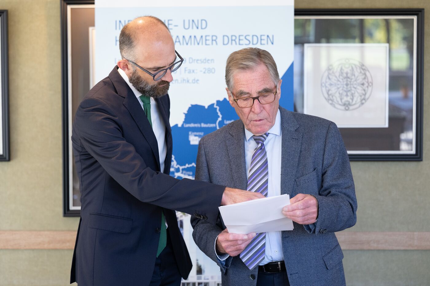 IHK-Geschäftsführer Lukas Rohleder und Präsident Andreas Sperl (re.) beobachten die Entwicklung des Wirtschaftsstandortes kritisch