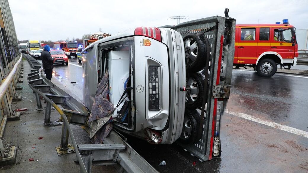 Ein heftiger Unfall hat auf der A17 Richtung Prag am Freitagnachmittag für eine Vollsperrung gesorgt. Wie uns die Polizei auf Anfrage sagte, war ein beladener Transporter in Höhe Altfranken auf der regennassen Fahrbahn ins Schleudern geraten, gegen die Leitplanke gestoßen und umgekippt. Der Mercedes Sprinter hatte mehrere Fahrzeuge auf seinem Anhänger geladen.