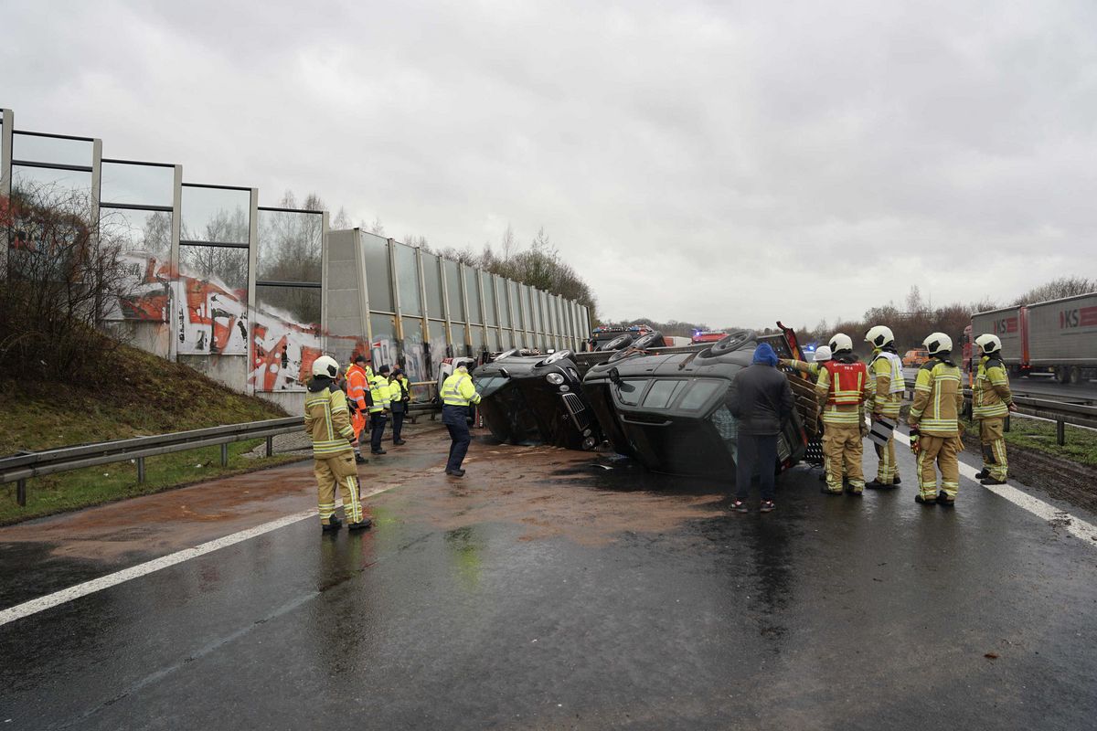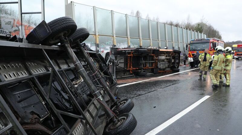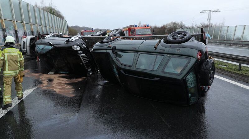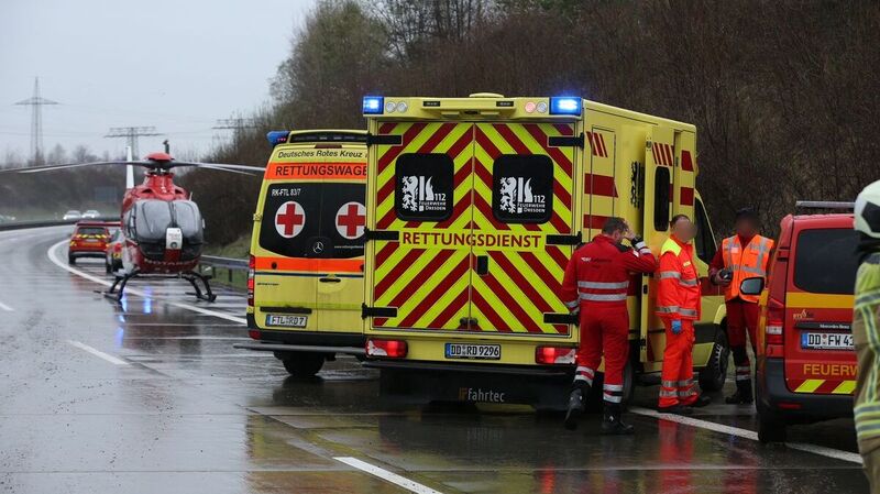 Der Fahrer (41) hatte Glück und blieb unverletzt, allerdings wurde eine 39 Jahre alte Mitfahrerin leicht verletzt. Den Einsatzkräften bot sich vor Ort ein Bild der Verwüstung: Über die gesamte A17 verteilten sich die umgekippten Fahrzeuge. Aufgrund des Anblicks wurde auch ein Rettungshubschrauber alarmiert, mehr als 100 Feuerwehrleute eilten herbei. Nachdem sich herausgestellt hatte, dass es nur eine leicht verletzte Person gab, hob der Rettungshubschrauber kurz darauf wieder ab.