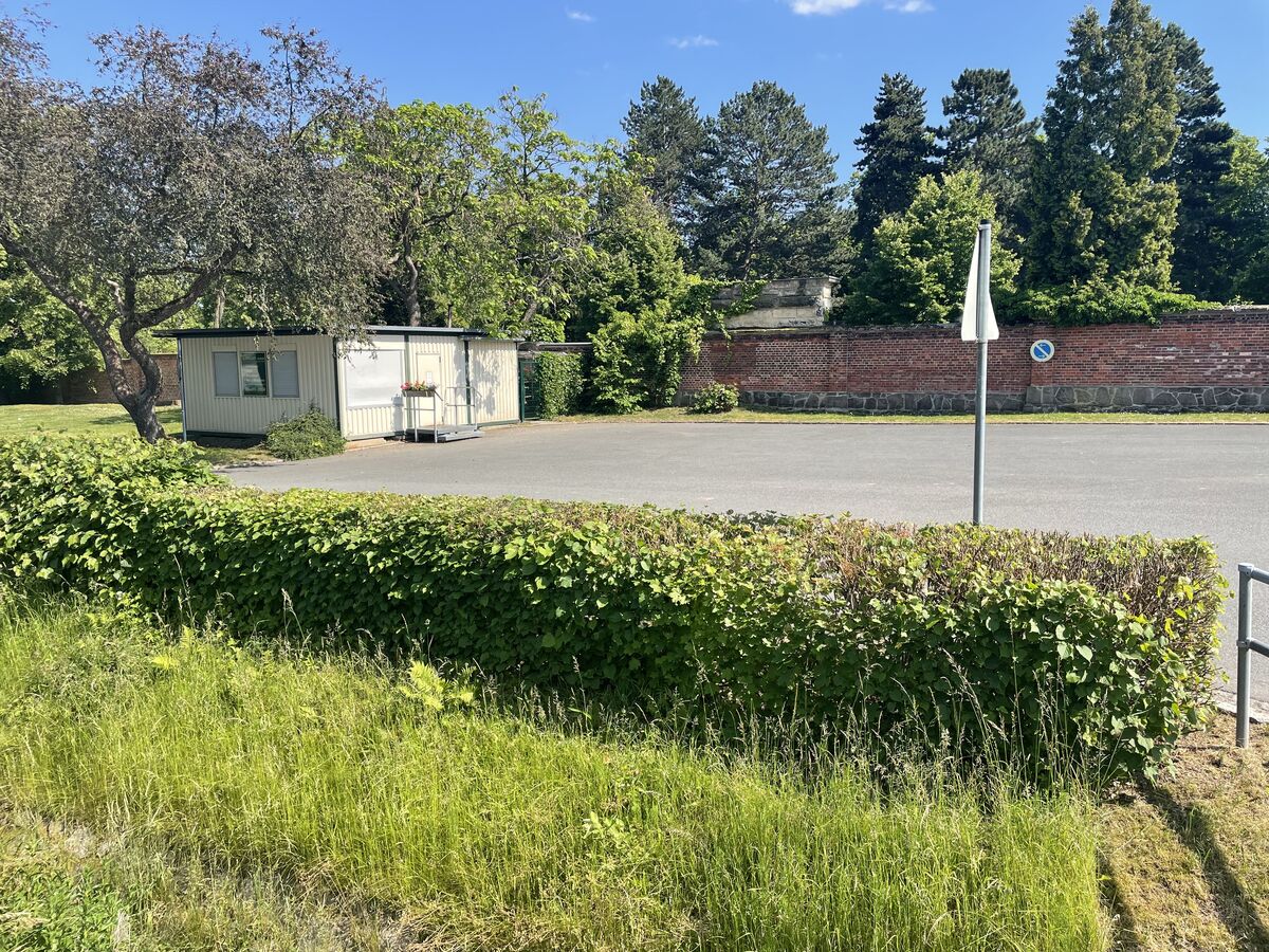 Die Stadt baut auf eigenem Gelände: neben der nördlichen Friedhofsmauer zwischen Krematorium und „Blumencontainer“. Es entsteht ein eingeschossiges Haus mit einem leicht geneigten Pultdach und einer Fläche von rund 160 Quadratmetern. Neben einem Großraumbüro sind unter anderem zwei Räume zur Beratung von Trauernden geplant. Bisher haben die Bestattungsdienste der Stadt ihren Sitz in der ehemaligen Kaserne. Mit dem Umzug in den Neubau verkürzen sich die Wege.