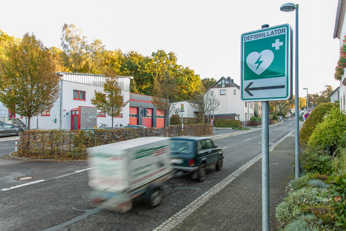 Der Defi ist wetterfest in einem Außenwandschrank am zentral gelegenen Feuerwehrgerätehaus angebracht. Auch Personen ohne medizinisches Grundwissen können damit bei einem Herzstillstand lebensrettende Maßnahmen ergreifen, den es Schritt-für-Schritt-Anweisungen am Gerät.