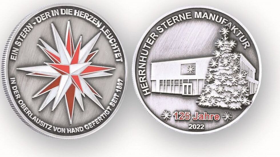 Die Herrnhuter Sterne GmbH gibt zum Ausklang ihres Jubiläumsjahres eine Medaille heraus. Damit werden 125 Jahre Manufakturbetrieb und zugleich die Arbeit der Mitarbeiter gewürdigt. Ihnen sei der Bekanntheitsgrad des Herrnhuter Sterns zu verdanken, sagte Manufakturchef Oskar Scholz.