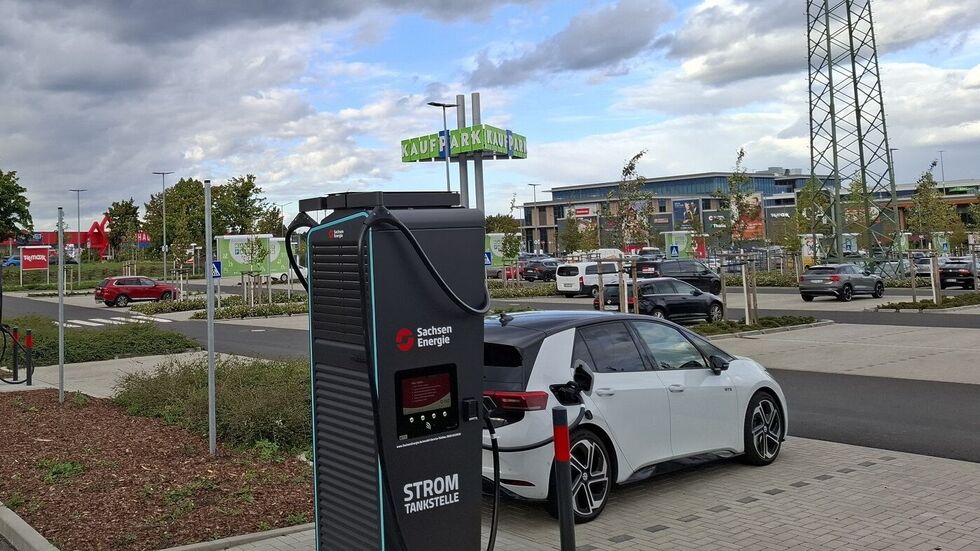 Noch schnell etwas einkaufen und gleichzeitig das E-Auto laden - das geht jetzt im Kaufpark an der Dohnaer Straße. Sachsen Energie hat auf dem Parkplatz fünf neue Schnellladestationen und somit zehn Ladepunkte in Betrieb genommen.