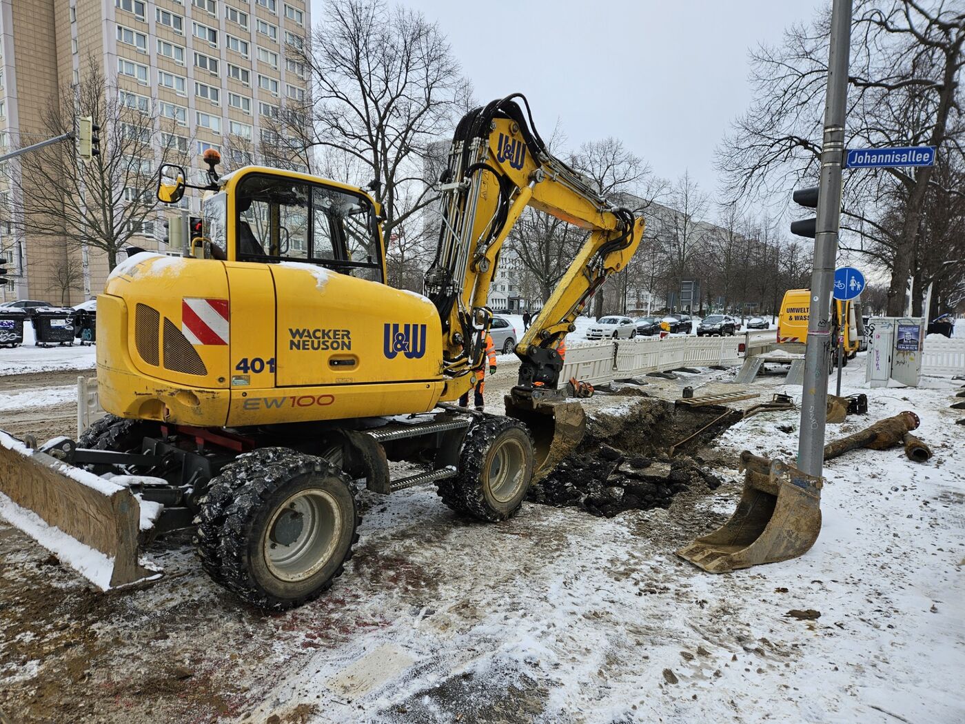 Wasserrohrbruch im Süden der Stadt: Auf der Straße des 18. Oktober, Ecke Johannisallee ist ein Rohr geplatzt - warum sei noch unklar, sagte uns ein Wasserwerke-Sprecher.