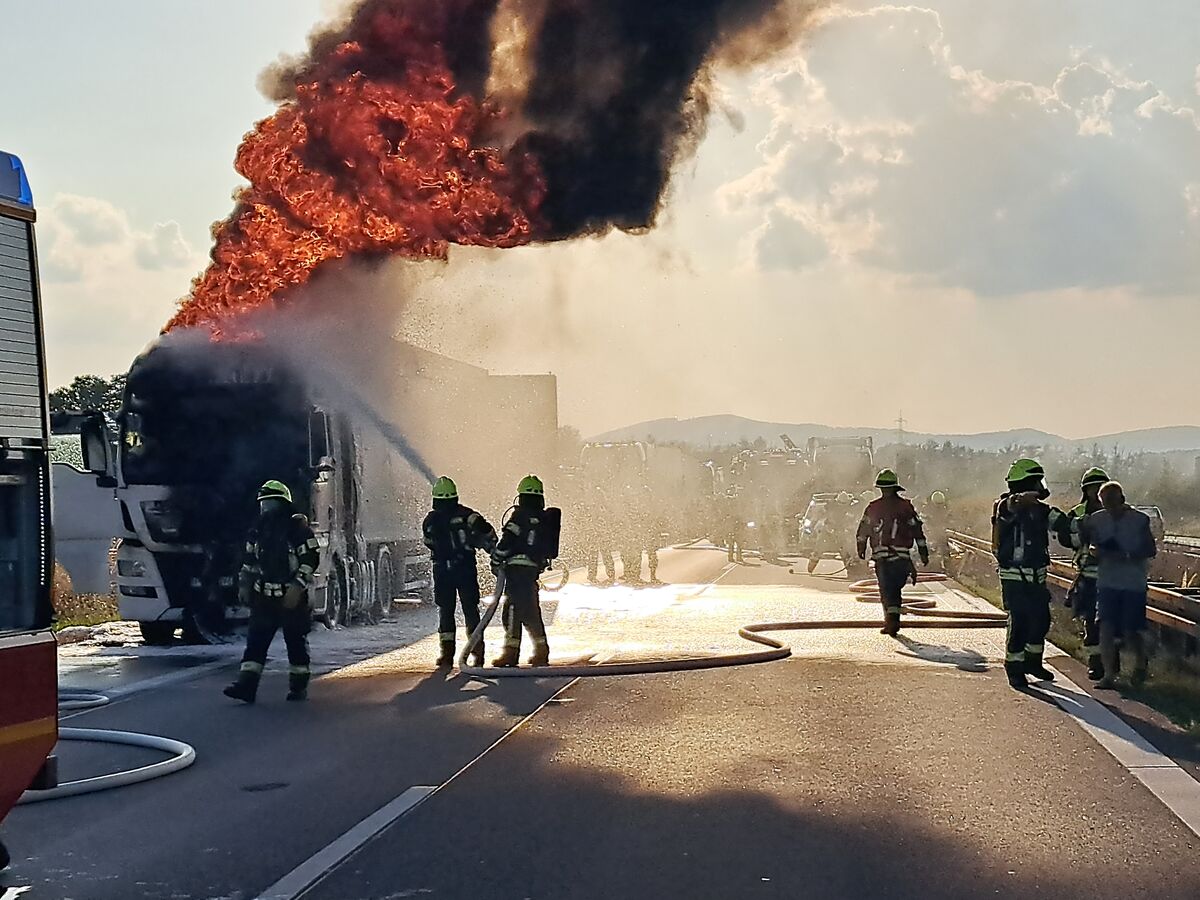 Der 62-jährige Lkw-Fahrer aus der Ukraine blieb unverletzt. Er konnte sich in Sicherheit bringen. Die Ursache für den Brand und die Schadenshöhe waren heute Morgen noch unklar. Ermittlungen werden geführt.