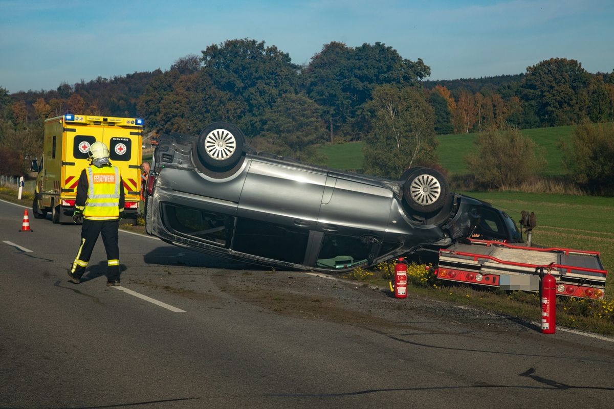 Ein SUV-Fahrer ist am Donnerstagnachmittag bei Elstra verunglückt. Kurz nach dem Abzweig Kindisch geriet der 58-Jährige mit seinem Kia ins Schlingern, so die Polizei. Dabei schaukelte sich der mit einem Kleintransporter beladener Anhänger auf und kippte um. Der Transporter riss von der Ladefläche und landete auf dem Dach.