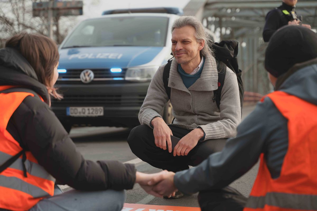 - Sehr oft bei Störaktionen dabei: der Dresdner Christian Bläul spricht mit seinen "Schützlingen"