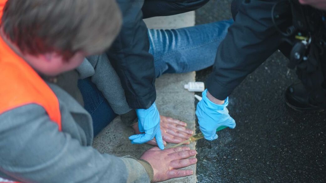 Ermittlungen laufen gegen die Autofahrer und die Klimakleber. Die Polizei war mit 14 Beamten im Einsatz.