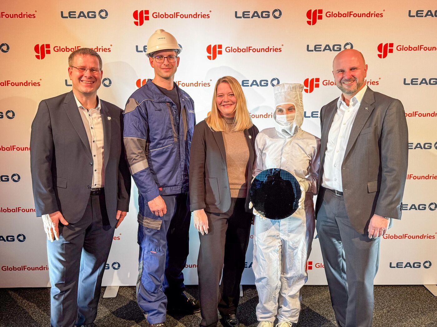 - (v.l.n.r.: Frank Jakubowski, Senior Director Manufacturing Operations bei GF; Richard Masula (LEAG); Nancy Stadel, Director HR Management bei GF; Henriette Fischer (GF); Jörg Waniek, Personalvorstand der LEAG.