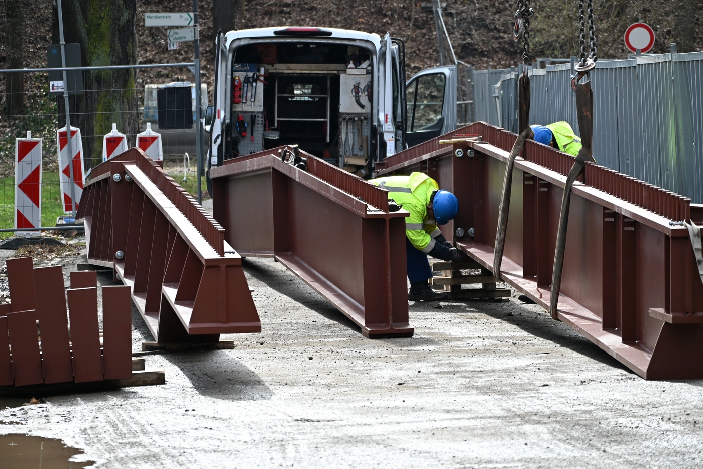 An der Görlitzer Stadthalle sind heute drei 20 Meter lange Stahlträger für das neue Orgeldach eingesetzt worden. Die Bauteile gehören zur Stahlbeton-Konstruktion, die das bisherige Holzgebälk ersetzt.