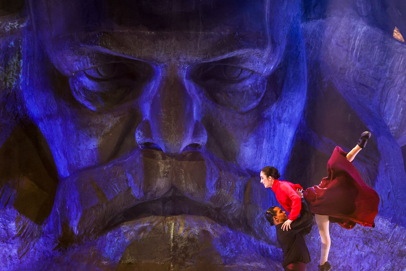 Der Sänger Bosse tritt vor dem Karl-Marx-Monument Eröffnung der Europäischen Kulturhauptstadt in Chemnitz auf.