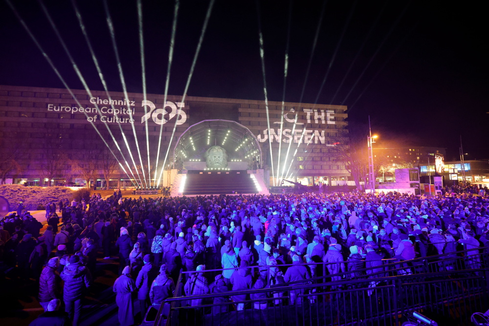 Am Abend versammelten sich Tausende am Karl-Marx-Monument, wo Künstler wie Bosse, Fritz Kalkbrenner und Paula Carolina eine mitreißende Open-Air-Show lieferten. Die Innenstadt war mit Bildschirmen ausgestattet, um die Show einem noch größeren Publikum zugänglich zu machen. Der Veranstaltungsbereich mit einer Kapazität von 20.000 Menschen war bis auf den letzten Platz gefüllt.