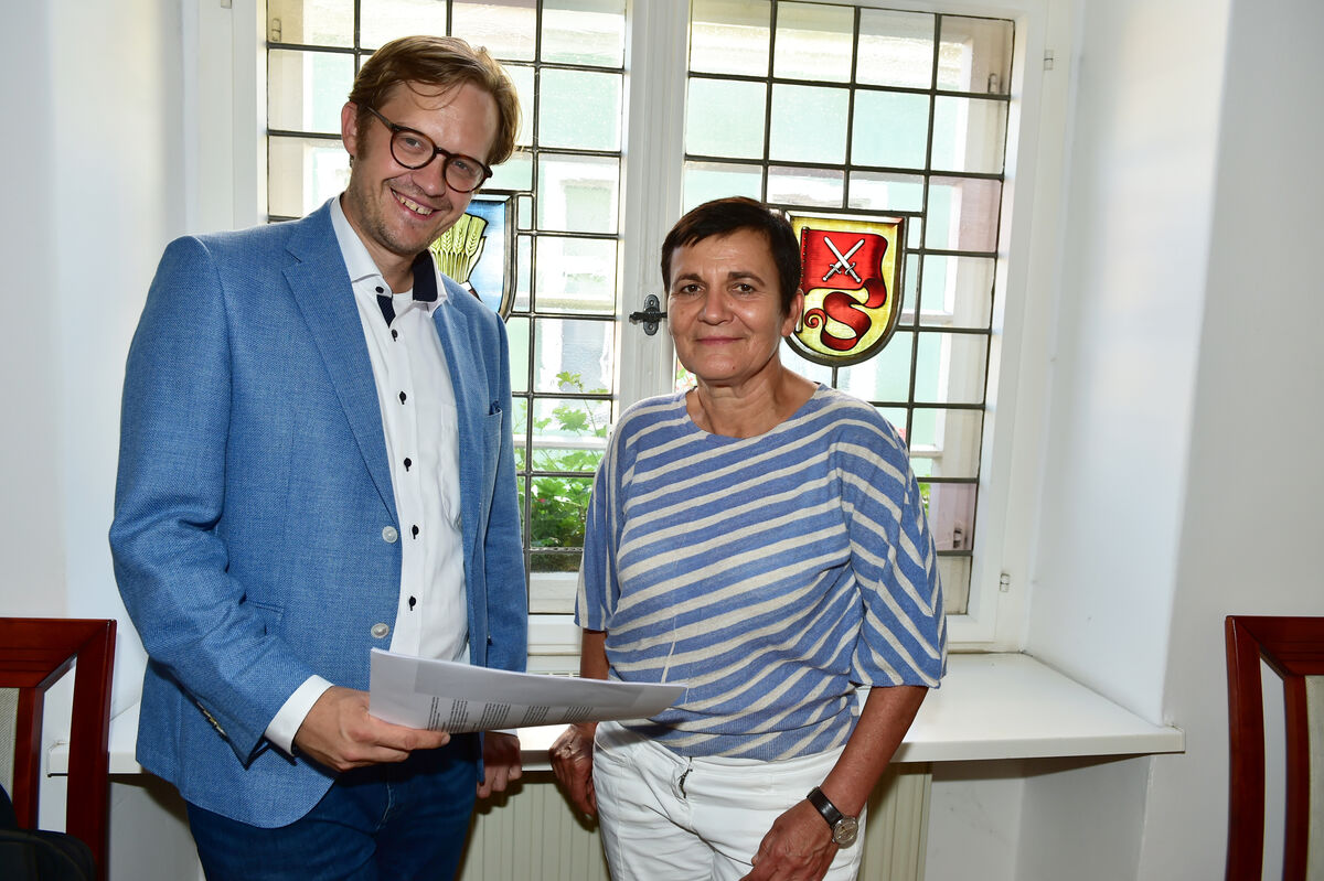 Andreas Pfeiffer (l.), Bürgermeister Stadt Senftenberg und Kathrin Winkler, Geschäftsführerin des Tourismusverbands Lausitzer Seenland.