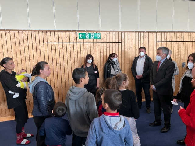 Landrat besucht Flüchtlinge in Notunterkunft in Bautzen