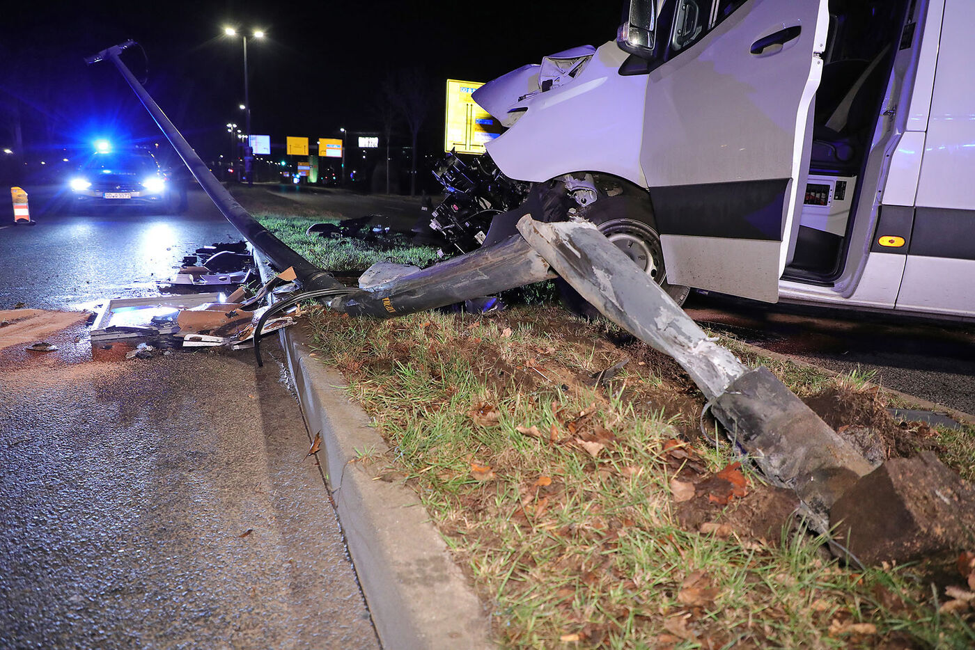 Auf der Dohnaer Straße in Dresden-Prohlis hat am Montagabend ein Mercedes-Sprinter eine Laterne gefällt. Der Fahrer war gegen 22:20 Uhr in Richtung Heidenau nach links von der Fahrbahn geraten und Höhe Gleisschleife gegen den Lichtmast gekracht. Der kippte in der Folge um.  Der 46-jährige Deutsche wurde bei dem Unfall leicht verletzt. Er hatte nach Angaben der Polizei über 1,6 Promille intus. Am Sprinter entstand Totalschaden. Die Dohnaer Straße wurde stadtauswärts gesperrt. Die Buslinie 66 mußte umgeleitet werden.