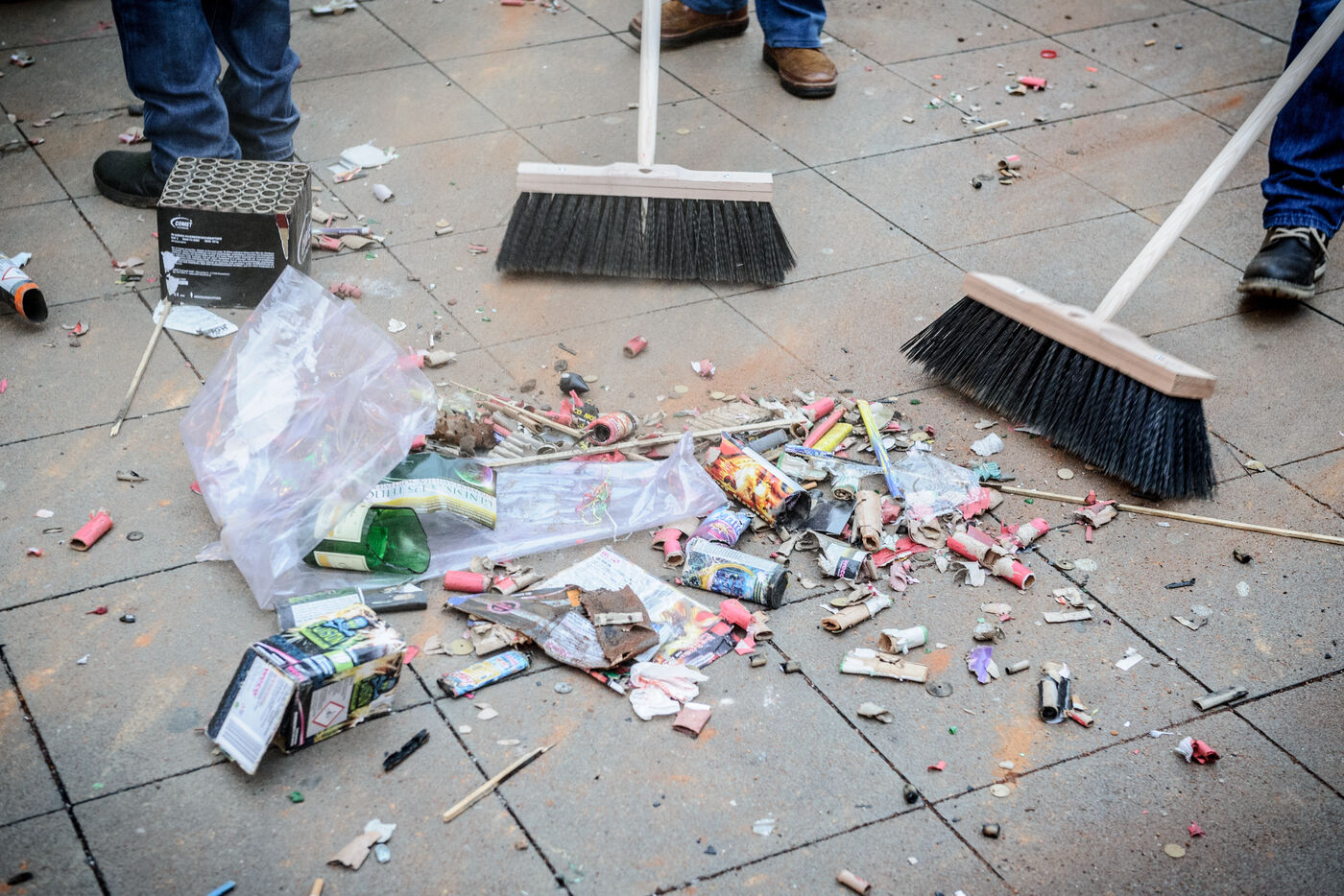 Nach zwei Jahren Knallverbot rechnet die Stadtreinigung dieses Silvester mit mehr Müll. Laut Sprecherin Susanne Zohl sei man aber gut auf die kommende Nacht vorbereitet. Bereits kurz nach Mitternacht beginnen die Beschäftigten mit den ersten Aufräumarbeiten in der Innenstadt. Bis 10 Uhr morgens soll dann alles wieder sauber sein. Die Stadtreinigung weist aber noch einmal darauf hin, dass jeder, der in der Innenstadt knallt, verpflichtet ist, seinen Müll selbst wegzuräumen. Bei Verstößen drohen Bußgelder vom Ordnungsamt. Alle anderen Straßen werden erst im Zuge der nächsten geplanten Reinigung gesäubert. Grundstückseigentümer sind selbst für die Reinigung von ihren Gehwegen verantwortlich.