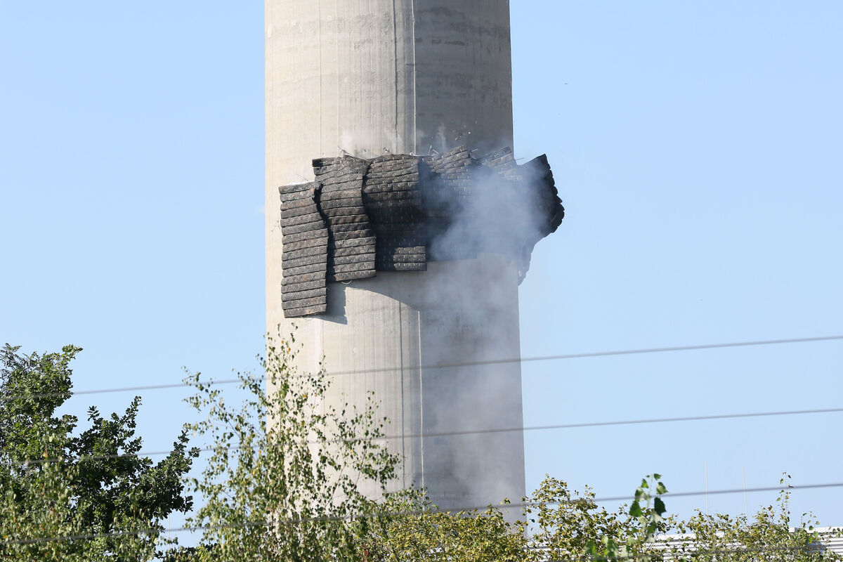 Nach der Sprengung soll das Abbruchmaterial nun getrennt und abtransportiert werden. Nach Angaben der Leipziger Stadtwerke erstrecken sich die Arbeiten über einen Zeitraum von bis zu fünf Monaten. Der Schornstein war ein Überbleibsel der Braunkohle-Ära in Leipzig. Bis 1996 wurden die Rauchgase des Heizwerkes darüber in die Luft abgeführt.(dpa)