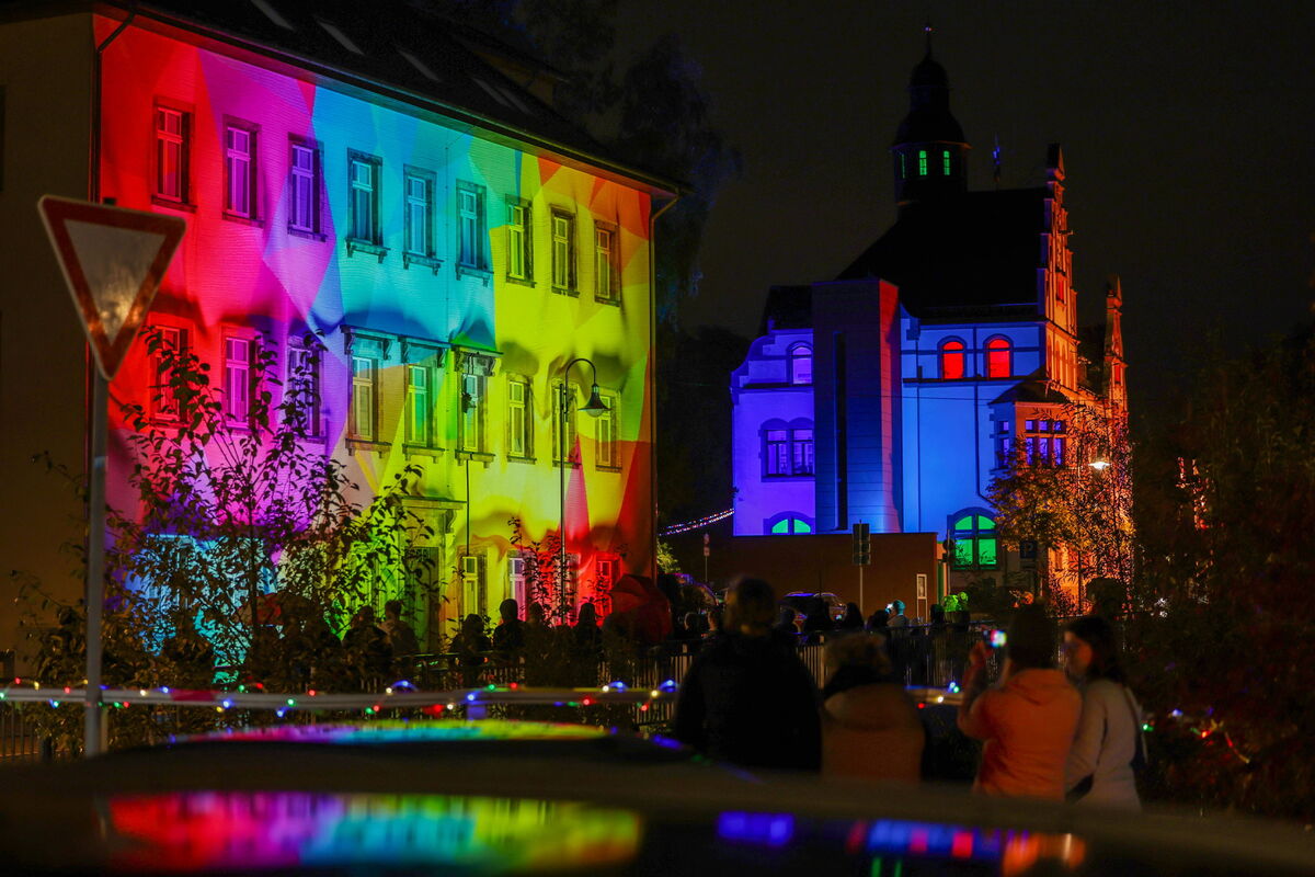 - Im ganzen Ort gab es bunte Lichtinstallationen zu dem Fest.