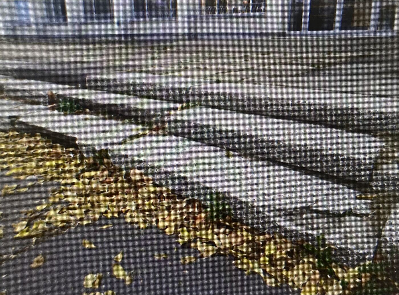 Kaputte Treppenstufen neben dem Markt. Hinten sieht man, dass irgendwann mal etwas ausgebessert wurde.
