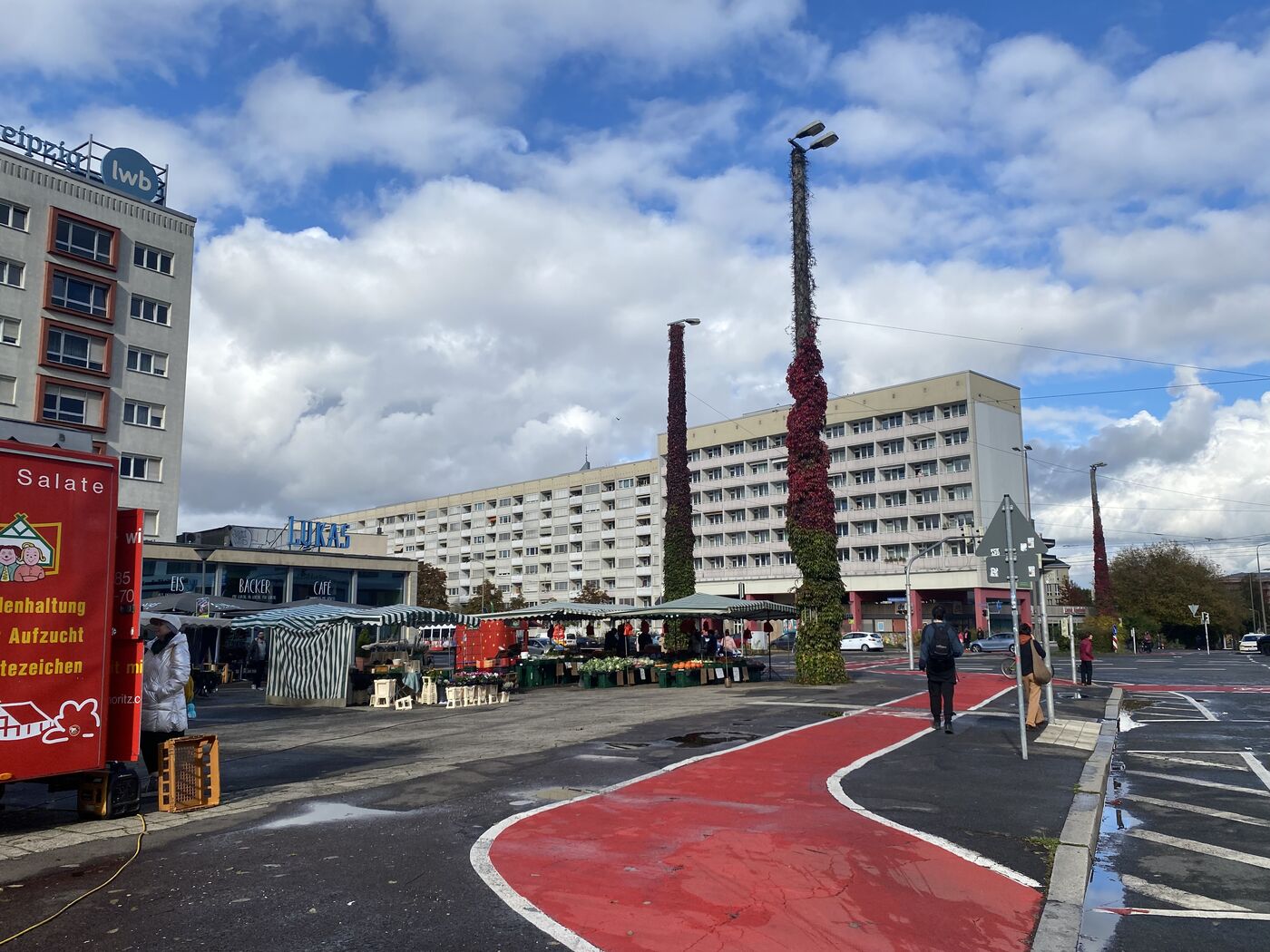 Blick auf den kleinen Markt auf dem Bayrischen Platz in Leipzig.