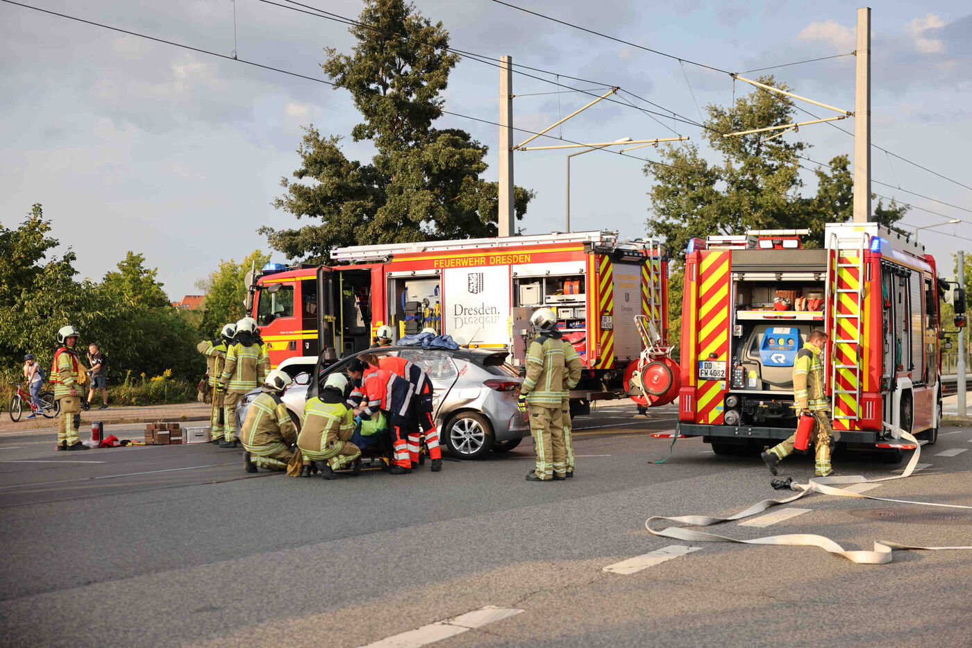Im Einsatz waren 24 Einsatzkräfte der Feuer- und Rettungswachen Albertstadt und Übigau, der Rettungswache Pieschen sowie der B-Dienst. Die Polizei hat die Ermittlungen zur Unfallursache aufgenommen.
