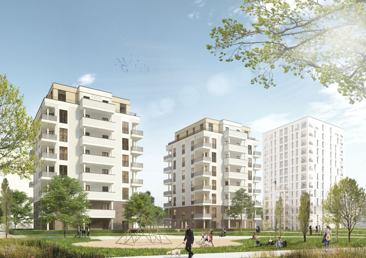 Mit den Häusern errichtet die Wohnungsgenossenschaft zum ersten Mal Gebäude in Holz-Hybrid-Bauweise. Zudem sind begrünte Dächer, Regenrückhaltesysteme sowie Photovoltaik- und Versickerungsanlagen geplant. Im Sommer 2025 soll alles fertig sein.