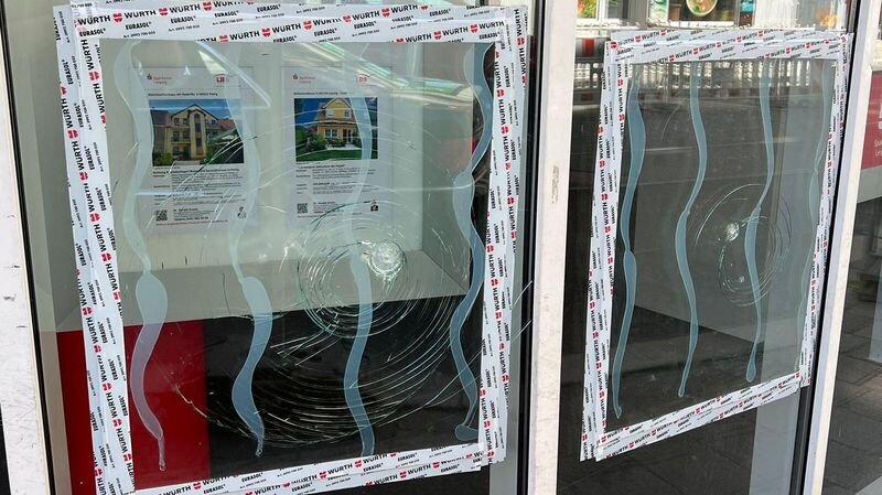 Die Polizeiwache, die künftig in der Eisenbahnstraße entstehen soll, wurde verbarrikadiert. Die Scheiben sind mit Spanplatten verstärkt worden.