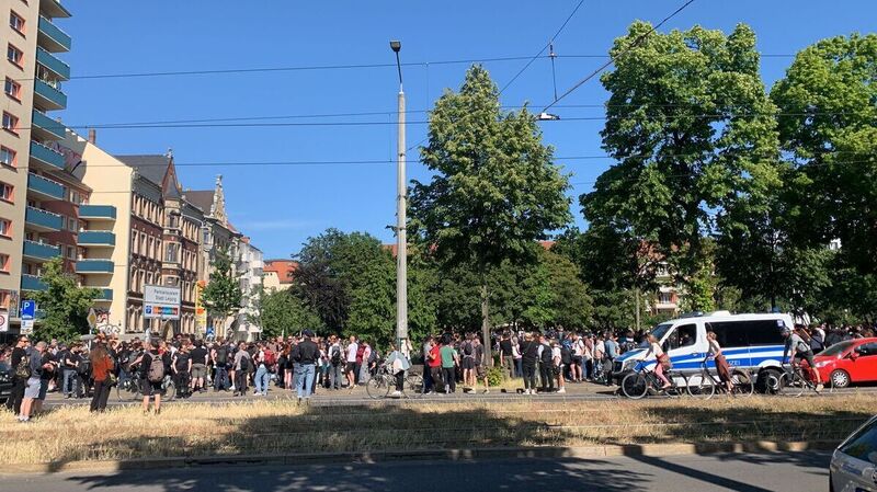 Die Solidaritäsdemonstration für die Studentin Lina E. sollte eigentlich um 17 Uhr in der Wolfgang-Heinze-Straße starten. Die Stadt hatte sie verboten - wegen Gewaltandrohungen in sozialen Netzwerken, der Gefahrenprognose der Polizei und Einschätzungen des Verfassungsschutzes. Beschwerden dagegen hatten vor dem Verwaltungs- und dem Oberverwaltungsgericht in Sachsen keinen Erfolg. (mit dpa)