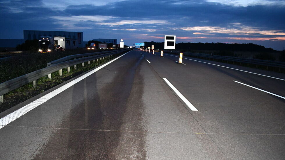 LKW fährt gegen Warnbaken und hinterlässt kilometerlange Dieselspur