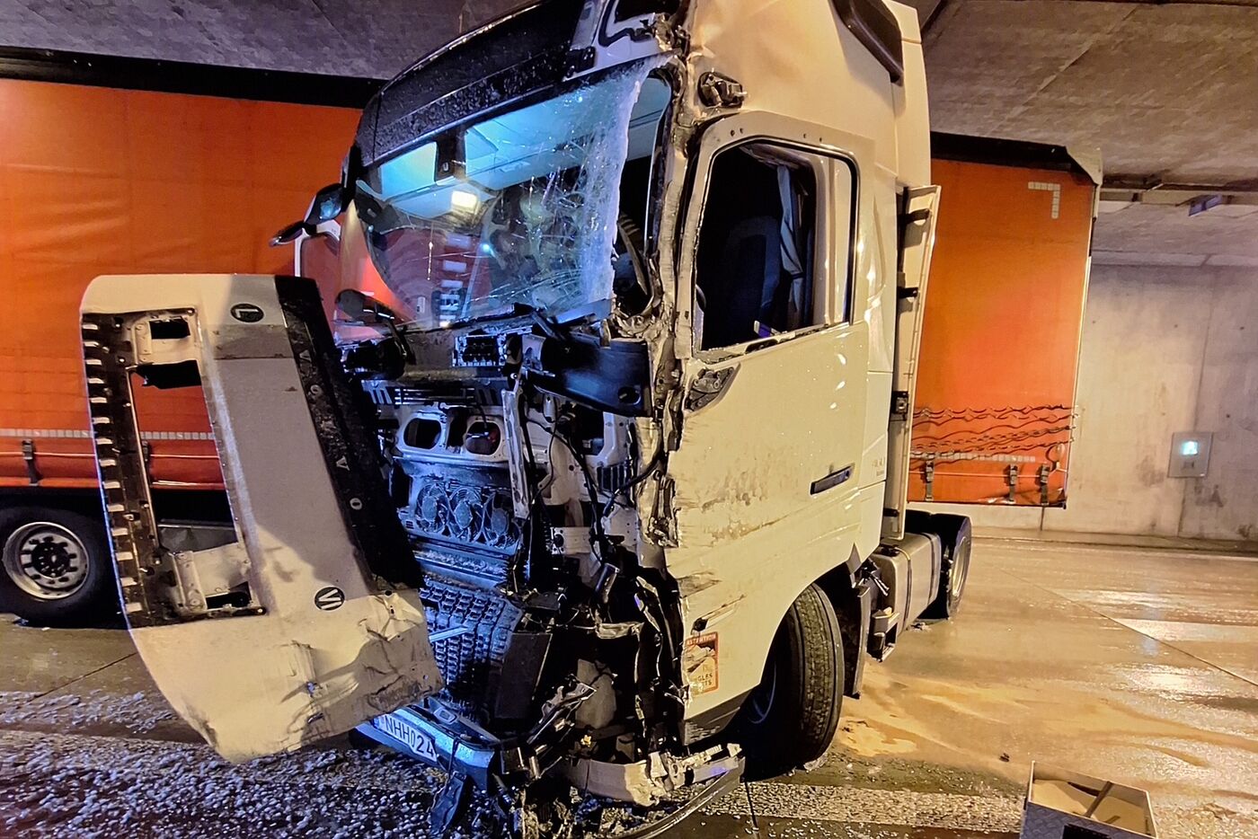 Der LKW-Fahrer hatte Glück und blieb unverletzt. Der Sattelzug konnte sich nach Informationen unseres Reporters aus eigener Kraft geradeziehen und den Tunnel beschädigt verlassen.