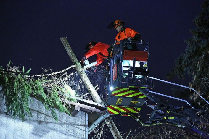 An der Gitterseestraße/Pestitzer Straße kippte der Sturm eine Fichte auf ein Wohnhaus