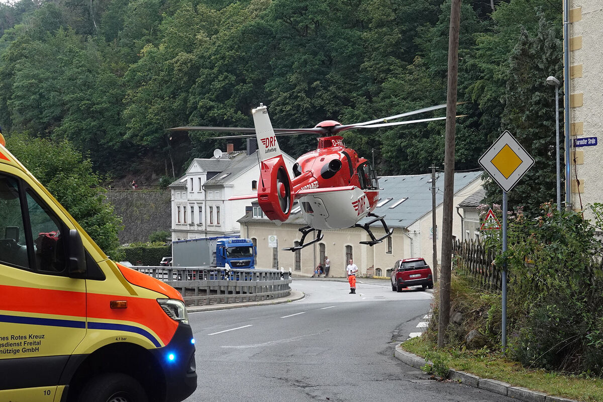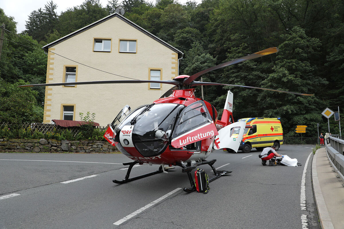 Der Mann wurde bei dem Sturz lebensgefährlich verletzt. Er kam mit dem Rettungshubschrauber „Christoph 38“ in ein Krankenhaus. Die Straße musste zeitweise gesperrt werden. Die Polizei ermittelt.