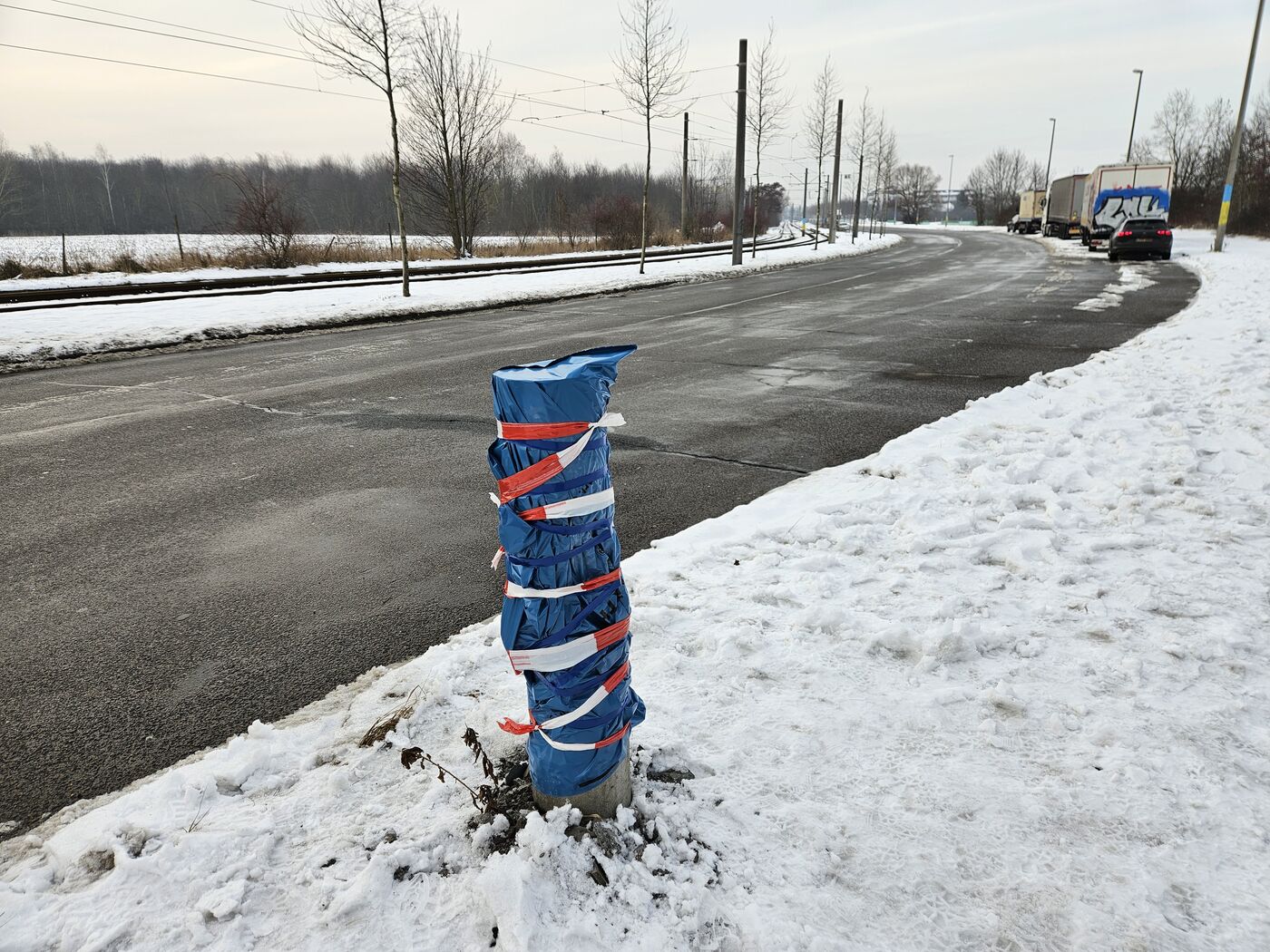 Mysteriöser Unfall am Mittwochmittag auf der Paunsdorfer Allee in Leipzig: Dort hat jemand offenbar einen Beton-Mast so heftig gerammt, dass dieser zerstört wurde und umkippte. Der Stumpf wurde grob eingepackt, der schwere Mast liegt einige Meter weiter noch dahinter.