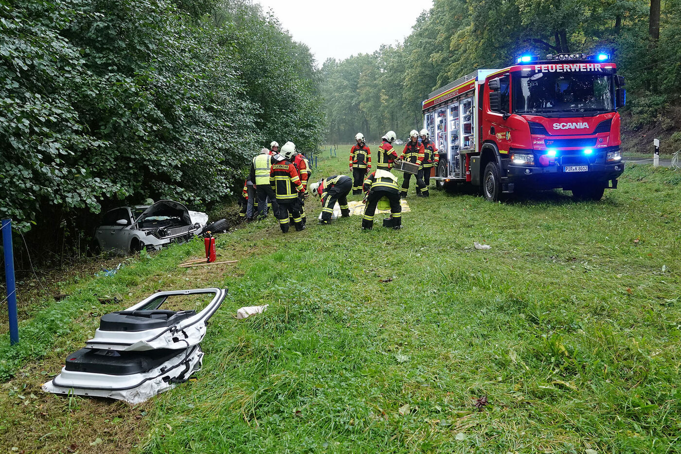 Schwerer Unfall auf regennasser Fahrbahn in Kreischa