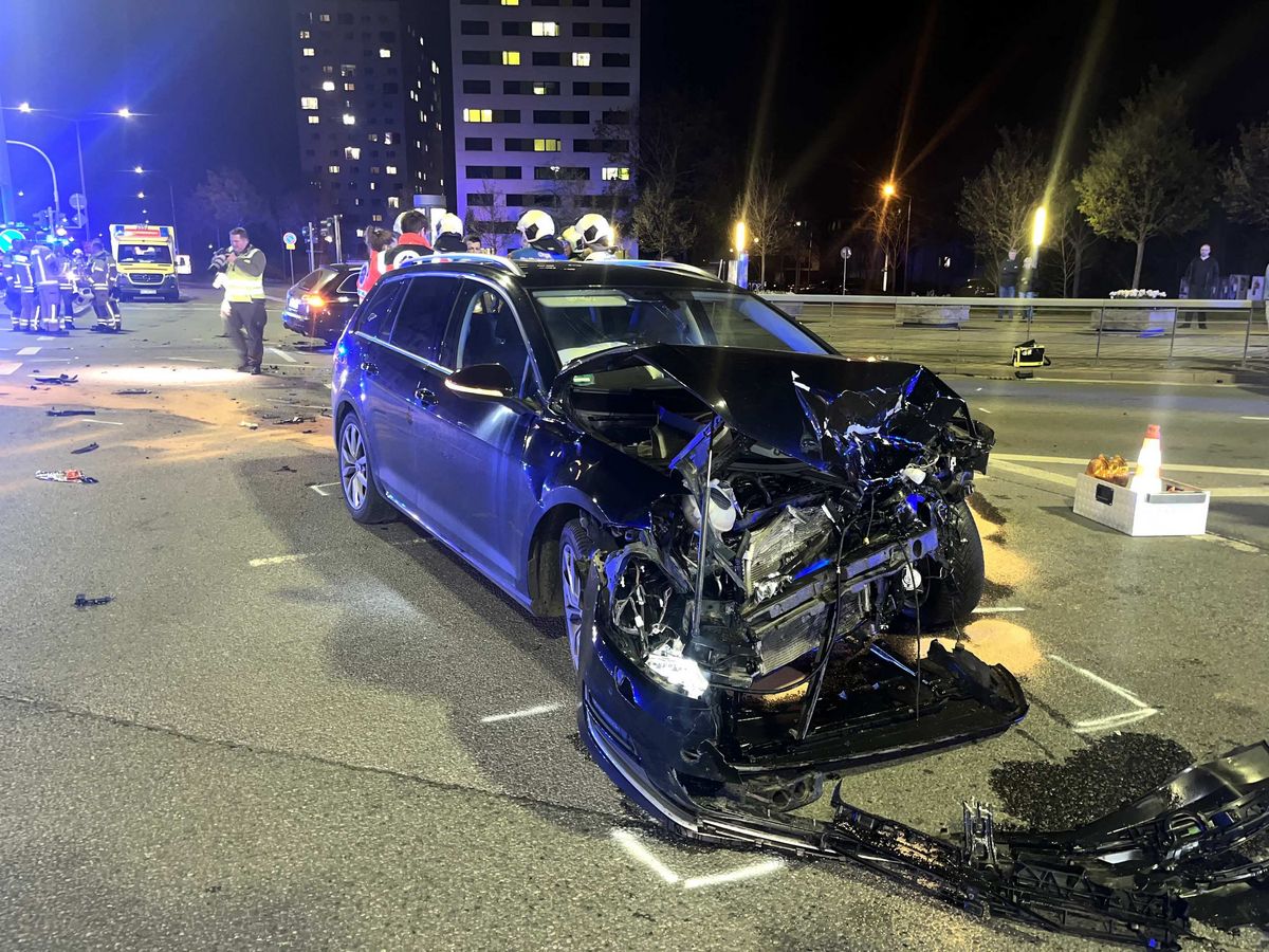 Der Unfallursacher und ein 14-jähriges Mädchen im anderen Wagen wurden schwer verletzt. Ein neunjähriger Junge und der VW-Fahrer verletzten sich leicht. Ein Atemalkoholtest beim Verursacher ergab 0,94 Promille.