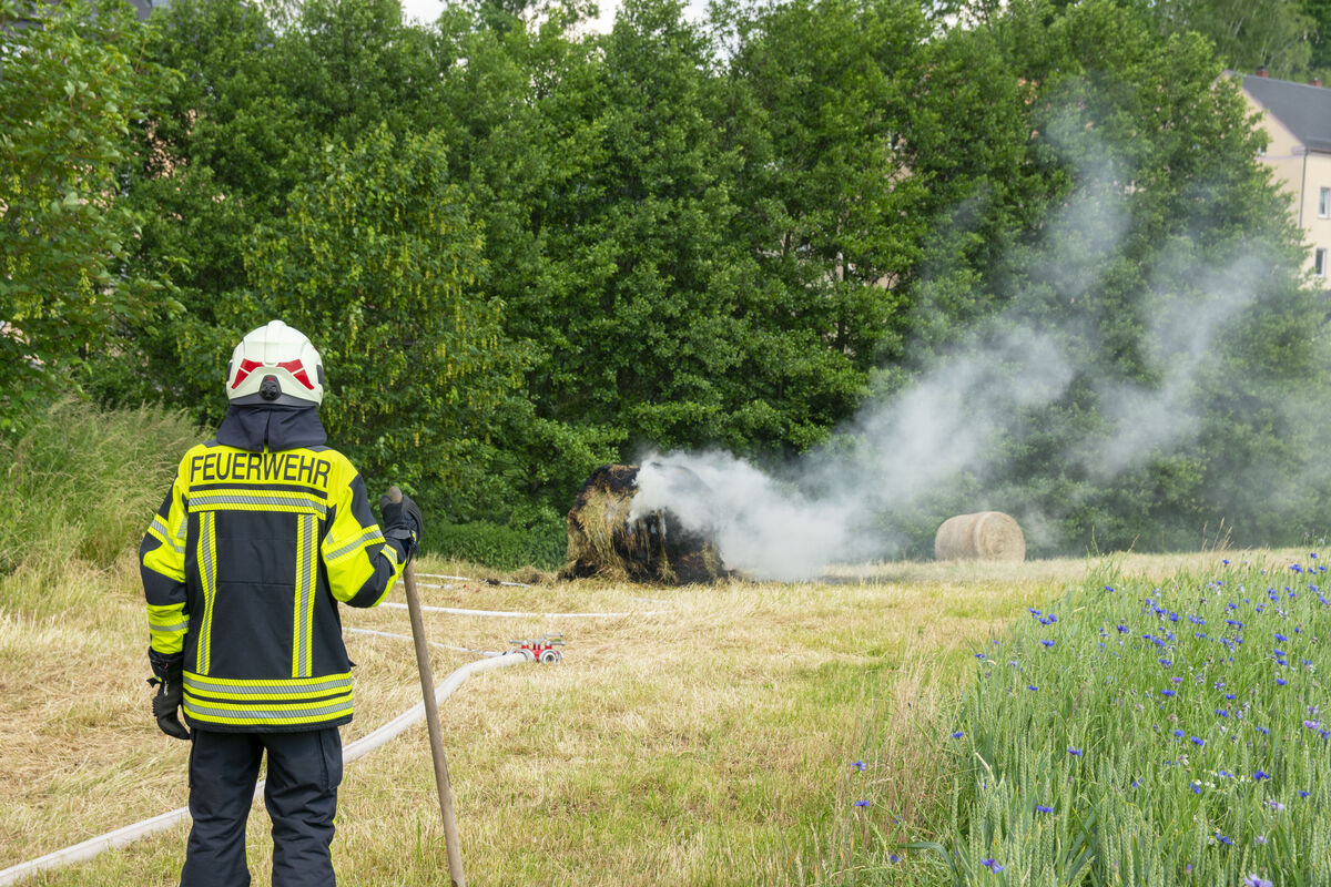 Brennende Strohballen hielten die Feuerwehr in Oelsnitz auf Trab.
