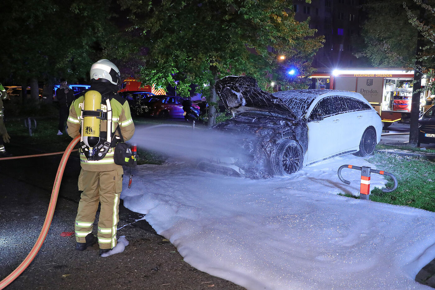 In Dresden Strehlen hat ein stillgelegter Mercedes lichterloh gebrannt. In der Nacht zum Sonntag stand der AMG in Flammen, das hat die Polizei Dresden mitgeteilt.
