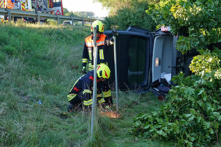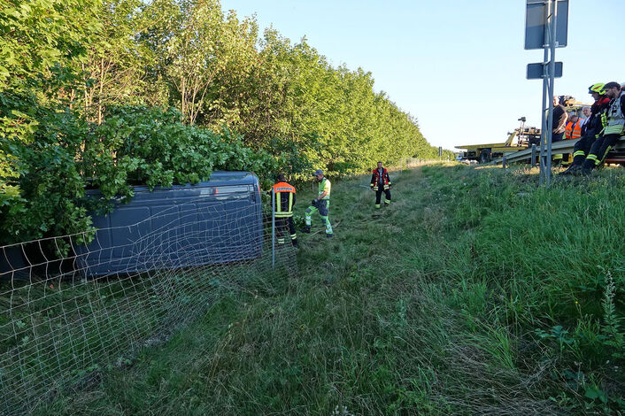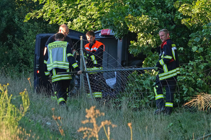 Mercedes-Transporter rauscht bei Radeburg in den Graben