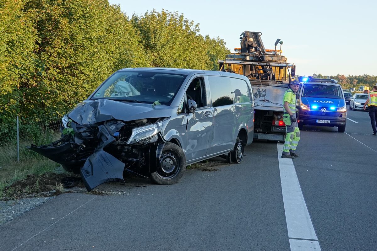 Autofahrer auf der A13 Dresden Richtung Berlin mussten sich zum Feierabend am Montag in Geduld üben. Die Autobahn war zwischen Radeburg und Thiendorf nach einem Unfall gesperrt worden. Ein Mercedes-Benz Vito war gegen 17.20 Uhr nach rechts von der Fahrbahn abgekommen und in den Straßengraben gekippt. Nach Angaben der Polizei war beim Überholen eines PKW ein Rad geplatzt. Der Kleintransporter kam ins Schleudern, durchbrach einen Wildzaun und fällte einen Baum. Der 54 Jahre alte Fahrer erlitt bei dem Unfall schwere Verletzungen. Er wurde mit dem Rettungshubschrauber ins Krankenhaus gebracht. Die 24 Jahre alte PKW-Fahrerin erlitt leichte Verletzungen. Ihr Citroën wurde von Reifenteilen getroffen. Die Polizei bezifferte den Schaden auf insgesamt 25.000 Euro.