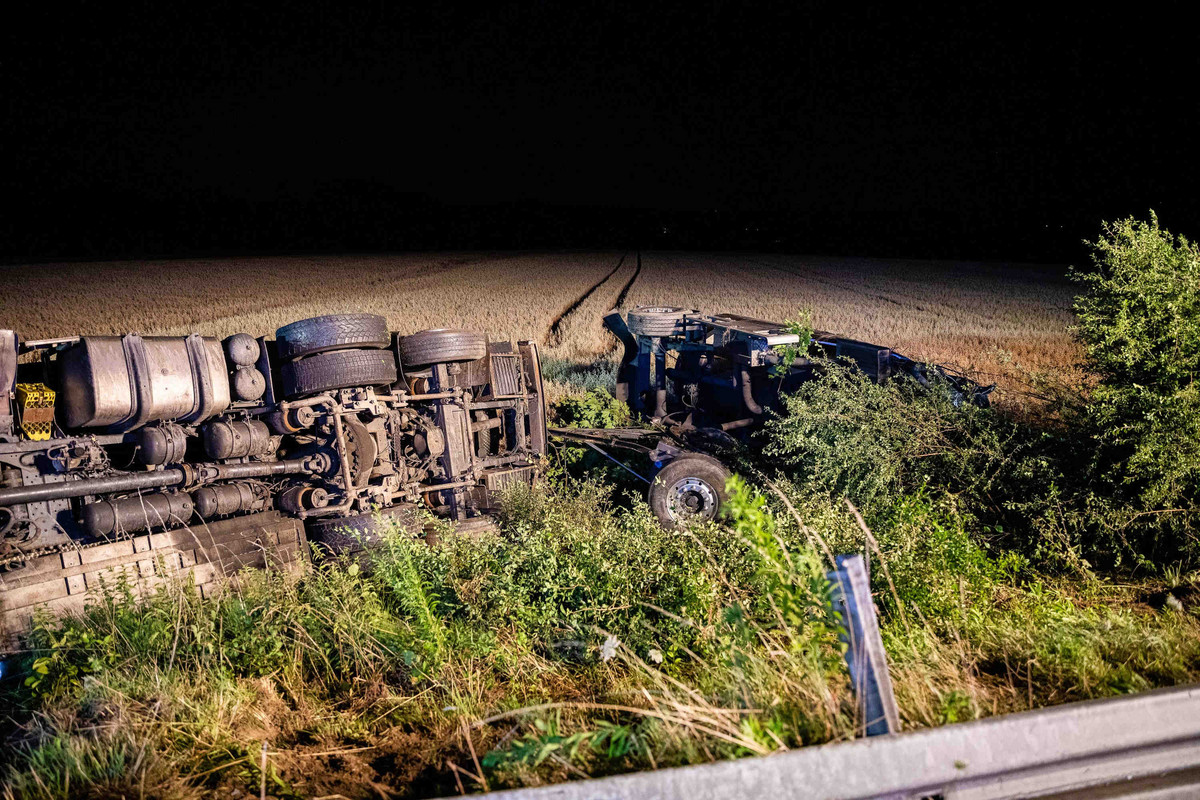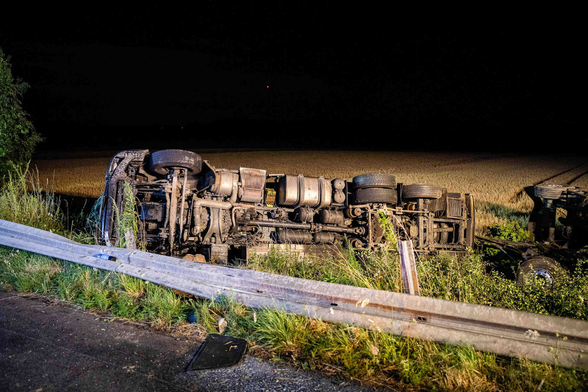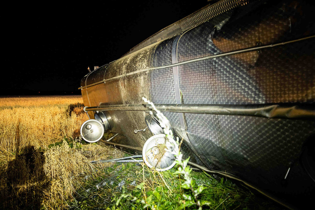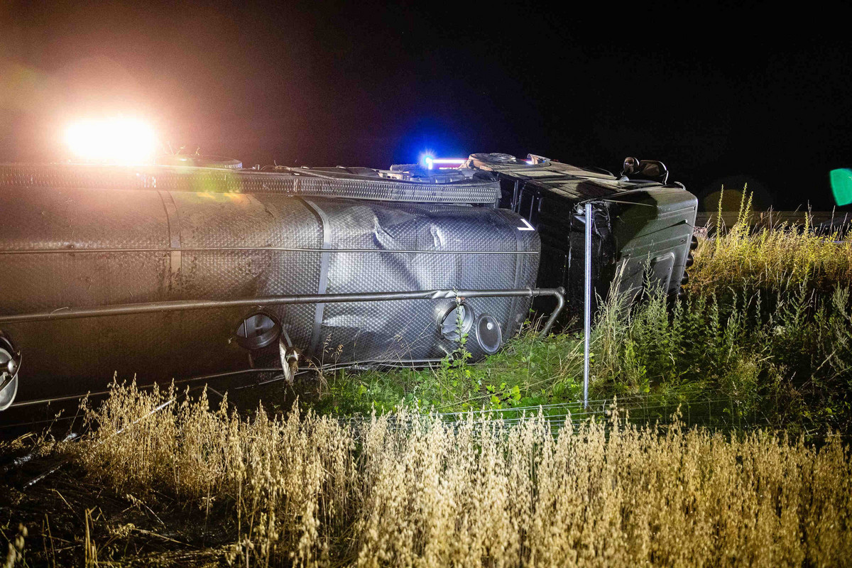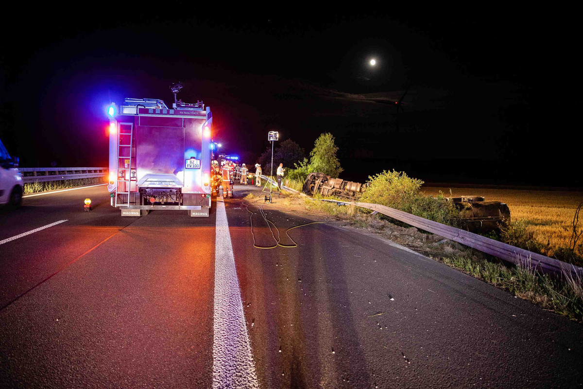 Auf der A4 Dresden Richtung Görlitz ist in der Nacht ein Milch-Transporter zwischen Ottendorf-Okrilla und Pulsnitz von der Fahrbahn abgekommen. Der Tanker hatte die Leitplanke und einen Wildzaun durchbrochen, war eine Böschung runter gerutscht und schließlich umgekippt.