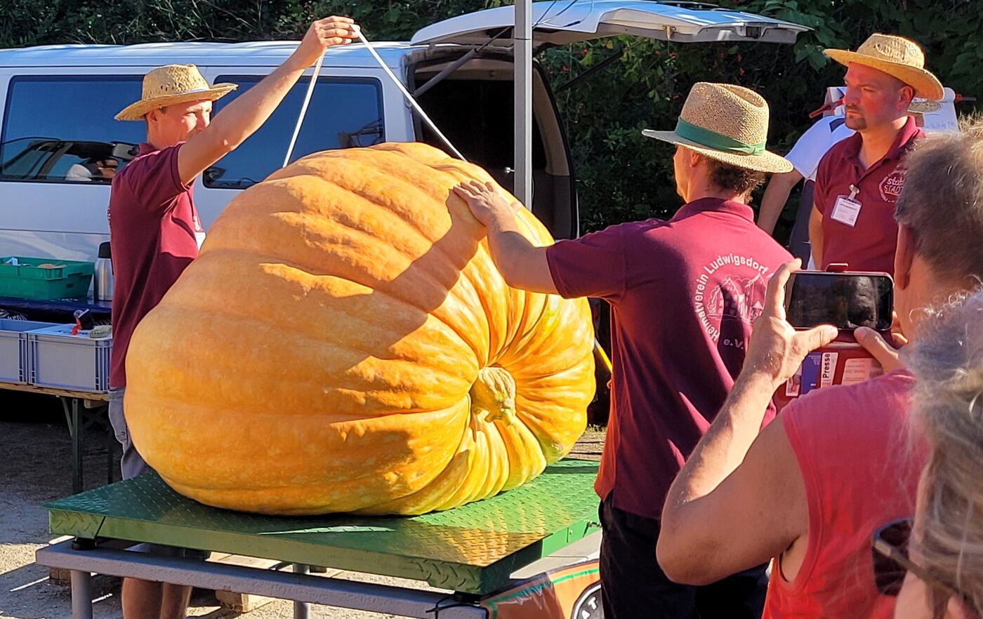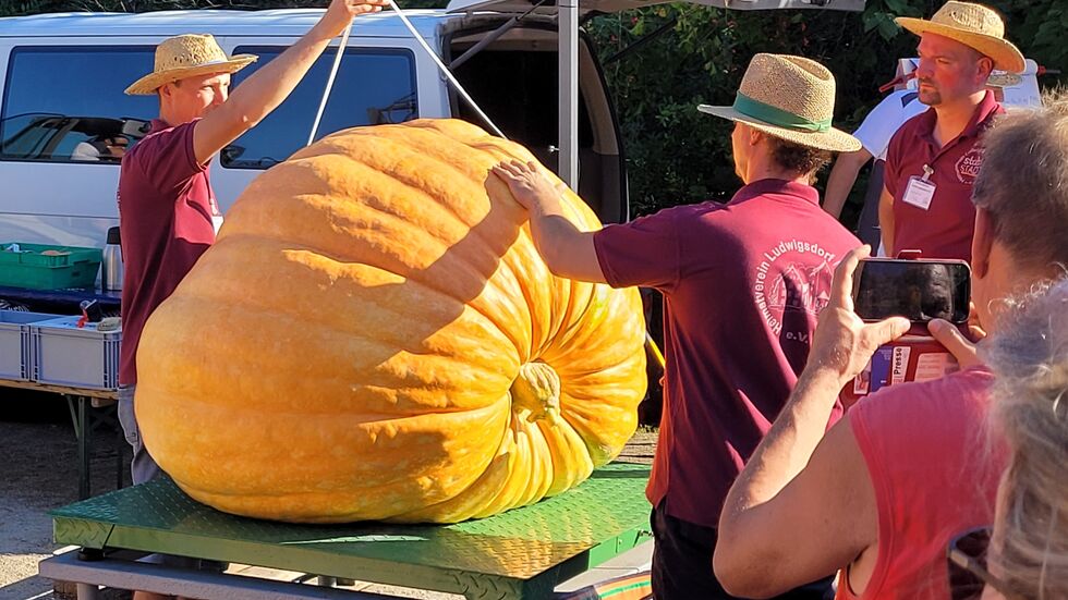 Ein ganzes Dorf im Kürbisfieber! Im Görlitzer Ortsteil Ludwigsdorf ist heute der schwerste Kürbis gekürt worden. Die Sieger kommen aus Brandenburg: Das Team „PaScha“ - Bernd Paul und Michael Schade aus Saarmund (Gemeinde Nuthetal) südlich von Potsdam. Die Waage zeigte 805,16 Kilogramm an. Der Sieger-Kürbis wuchs im Zelt heran. „Alles Bio“, versicherten die beiden Züchter. Als Zutaten mischten sie aber „viel Liebe, Wasser und Geduld“ bei.