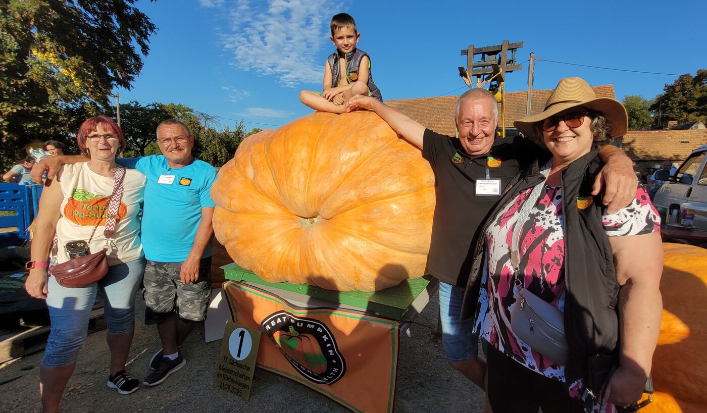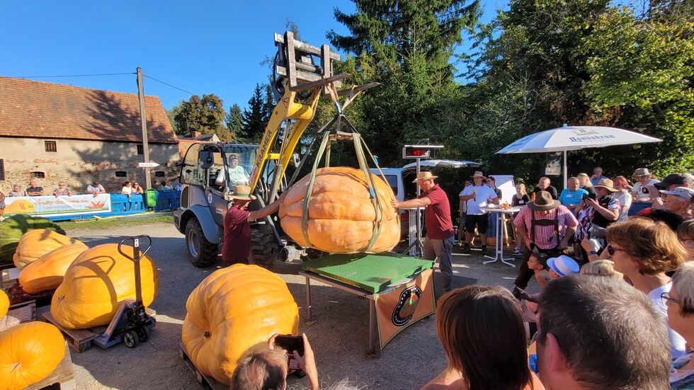 An der 17.offenen sächsischen Meisterschaft im Kürbiswiegen nahmen zwölf Züchter aus Sachsen und Brandenburg teil. Mehr als 300 Schaulustige verfolgten den Wettbewerb.