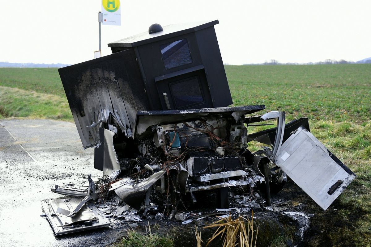 Der in einer Anhängerattrappe versteckte Tempomesser stand an der Hauptstraße. Die Polizei schätzt den Schaden auf mehr als 100.000 Euro. Ermittlungen wurden aufgenommen. Die Kripo geht dem Verdacht der Brandstiftung nach. Aber auch ein technischer Defekt könne nicht ausgeschlossen werden.