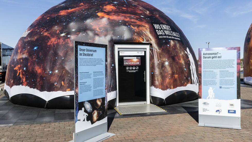Der Eintritt ist frei. Um vorherige Anmeldung wird gebeten. Das mobile Planetarium ist bis September im Rahmen des „Wissenschaftsjahrs 2023“ in insgesamt 15 Städten in ganz Deutschland zu erleben.