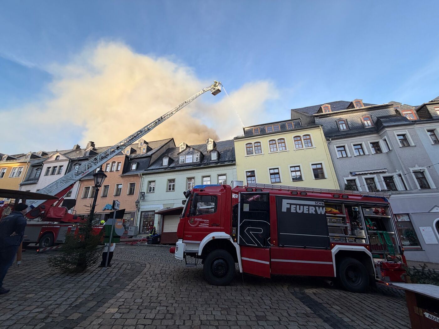 Nach dem schweren Brand in der Schwarzenberger Altstadt dauern die Ermittlungen der Polizei weiter an. Wie uns eine Sprecherin sagte, gehe man derzeit von fahrlässiger Brandstiftung aus. Aktuell werde noch geprüft, ob das Feuer durch einen elektrischen Defekt im Haus ausging oder von einem technischen Gerät. Tatsache sei, dass sich die Flammen in einer Wohnung im Dachgeschoss gebildet hatten.