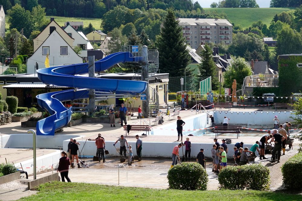 Nach Unwetter: Arbeitseinsatz im Freibad Burkhardtsdorf