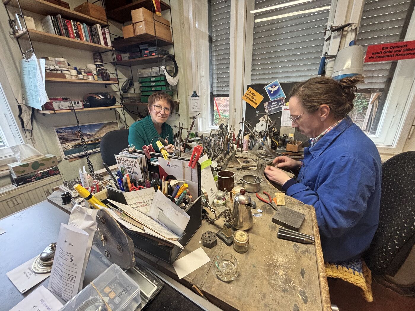 Seit Anfang Oktober macht Wirsing nun seine Ausbildung zum Goldschmied. In zwei Jahren könnte er sie vorzeitig abschließen und die Goldschmiede übernehmen. „Die praktische Gesellenprüfung könnte er schon nächste Woche machen, aber die Theorie gehört eben auch dazu“, sagt Christine Burkhardt über ihren neuen Azubi. „Ich bin sehr glücklich, dass es die Goldschmiede noch in einer sechsten Generation geben kann!“